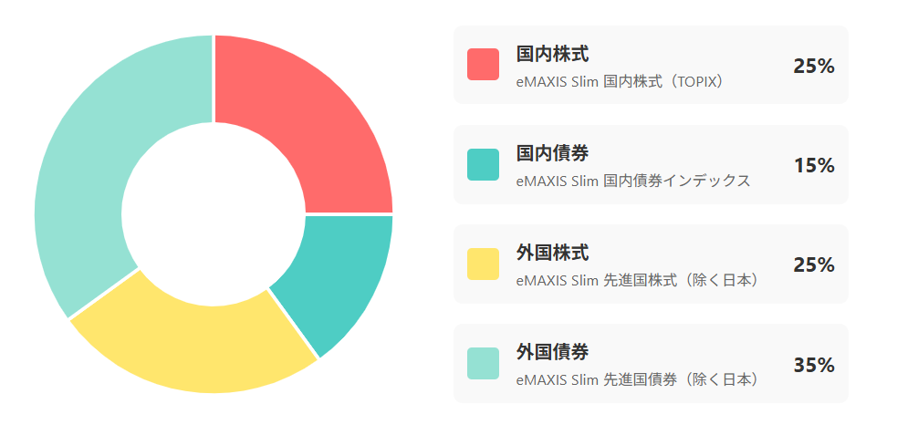 初級編の資産配分例は、安定性を重視したバランス型であり、リスクを抑えて堅実な運用をしたいという人向けのモデルです。