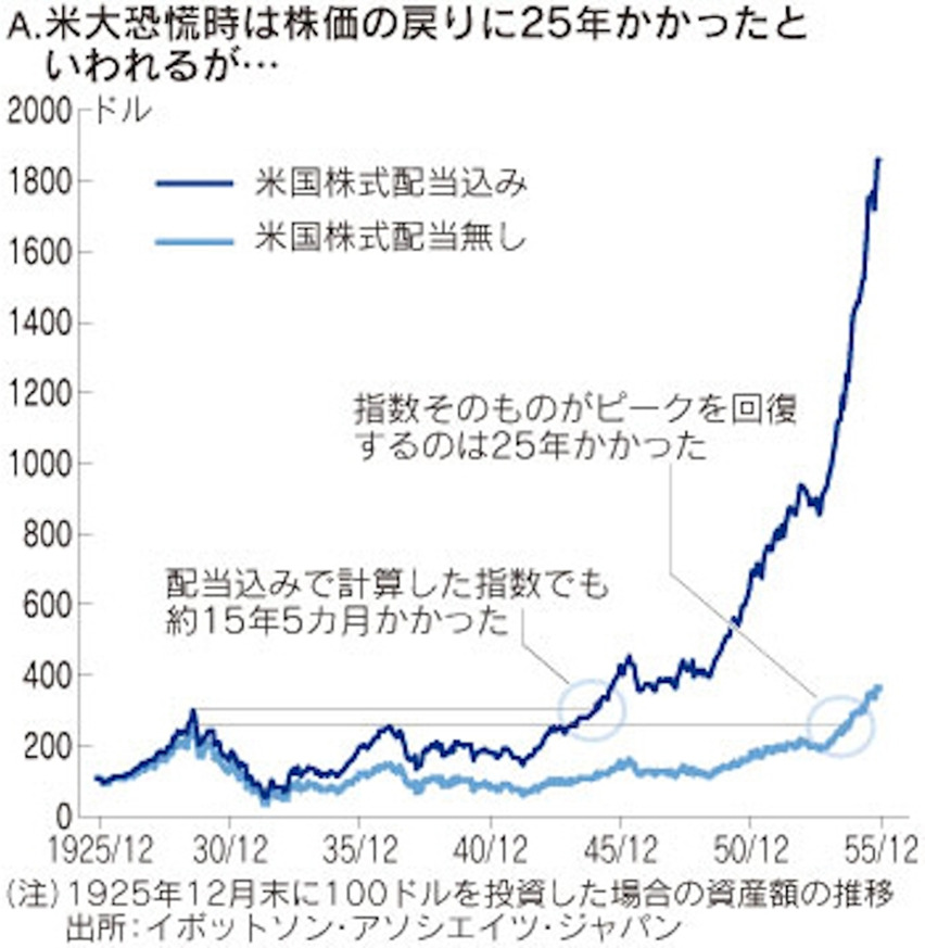 実際、1929年の世界大恐慌ではアメリカの株式が90%下落し、元に戻るまでに25年もの時間を要しました。