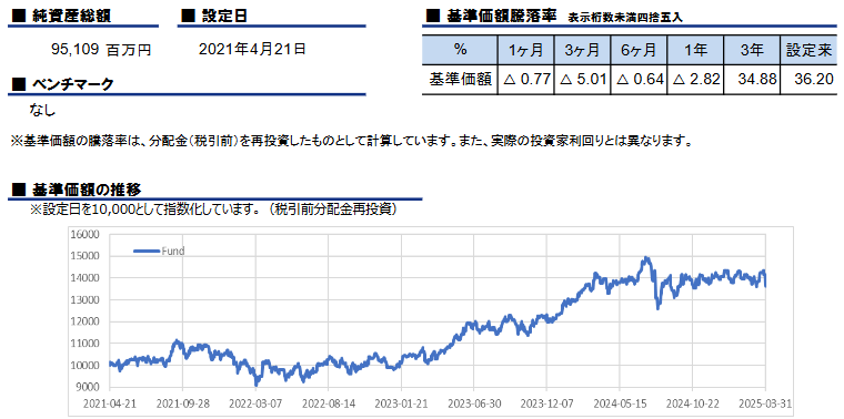※日本株式プラス型の設定日である2021年4月21日から2025年3月31日までの成績