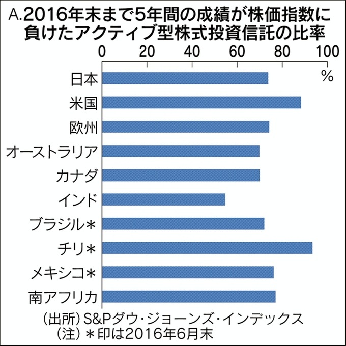 アクティブファンドのほとんどはインデックスファンドに負けている